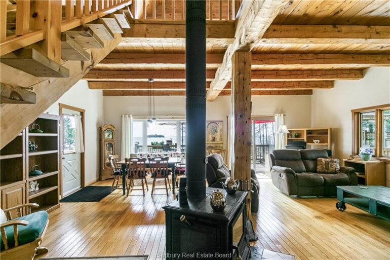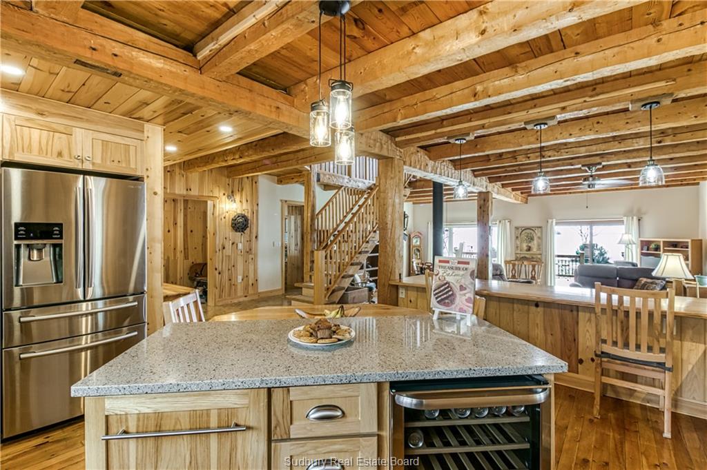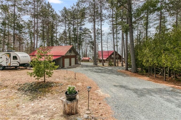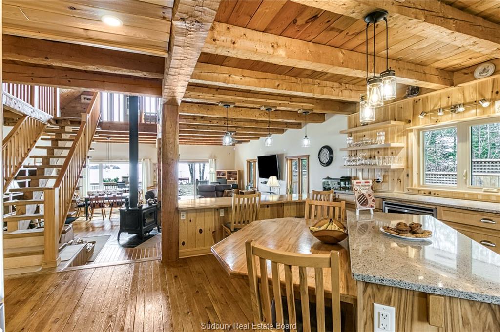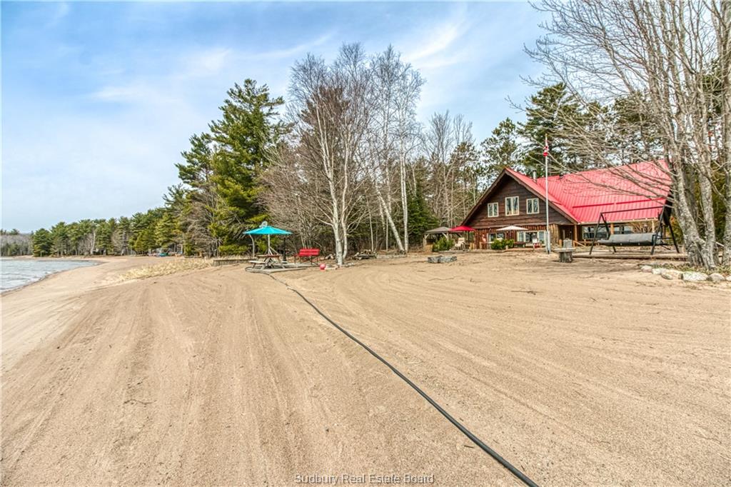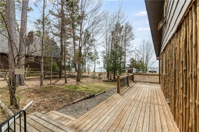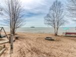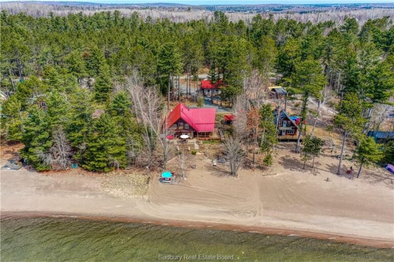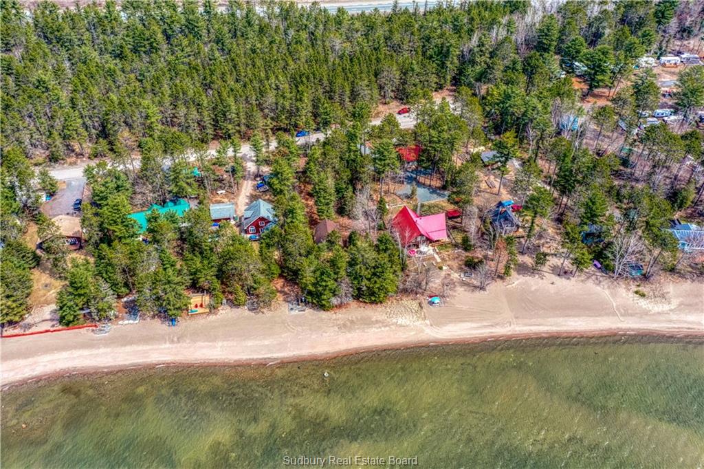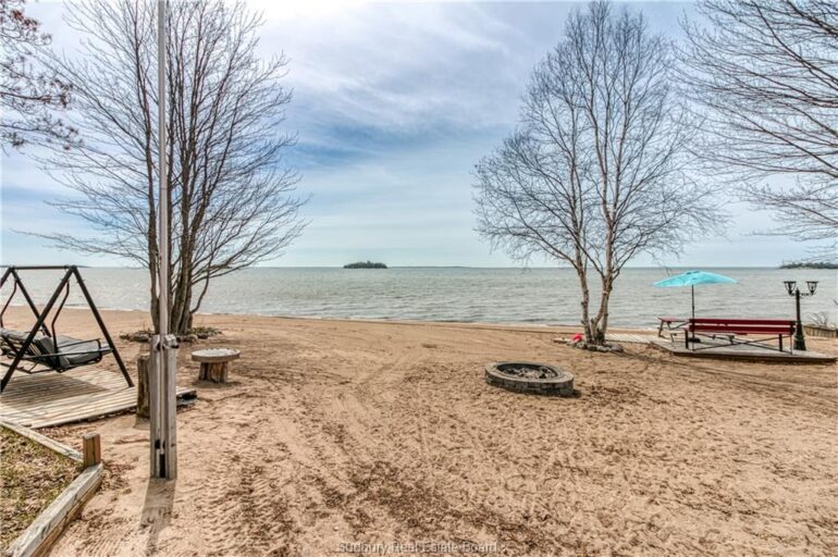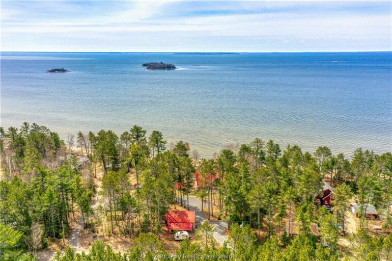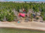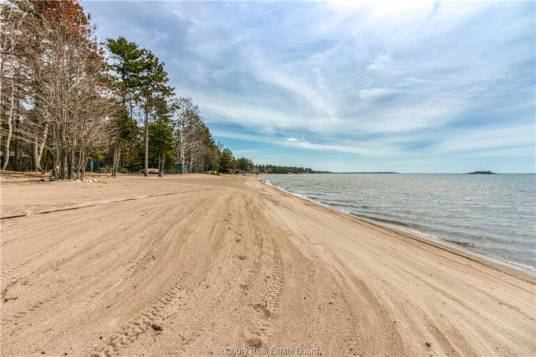 Welcome to 33 Dominion Park Drive, tucked away on a large beautiful treed lot along the pristine North Shores of Lake Huron. This exceptional post and beam custom built home offers an unmatched blend of comfort, craftsmanship, and natural beauty. With its own wide stretch of soft, sandy beach and unobstructed south-facing views, you’ll experience everything from warm sunrises to breathtaking sunsets. Whether you’re sipping morning coffee while the lake sparkles or winding down to the rhythm of the waves, the setting is simply unforgettable. Built with care and timeless design, this year round home features soaring vaulted ceilings, rich hardwood floors, and large windows that fill the space with natural light, offering panoramic views of the water. The heart of the home is the magazine worthy chef’s kitchen, complete with granite countertops, solid wood cabinetry, stainless steel sink and appliances, and open sightlines to the living spaces and the lake beyond. The main floor’s primary ensuite features a 3pc bath, walk-in closet and laundry. Upstairs, you’ll find a cozy yet airy family room with more stunning lake views, massive loft style bedroom, 3rd bedroom and full bathroom. With an impressive woodstove, propane wall furnace(2017), and electric backup, come low utility costs. Additional updates: steel roof (2009), newer windows including a brand new oversized lake facing window (2025), plumbing/electrical/water heater (2017), and professional crawl space improvements by Kenmar Basement Systems (2017). Outside, the property continues to captivate surrounded by perennials. The detached garage features a spacious loft—ideal for a studio, extra living space or storage. Whether you’re looking for a permanent home, a seasonal getaway, or a family retreat, 33 Dominion Park Drive offers the rare opportunity to live on one of the Great Lakes, surrounded by beauty, while being easily accessible. This is more than a home and once you arrive, you simply won’t want to leave!