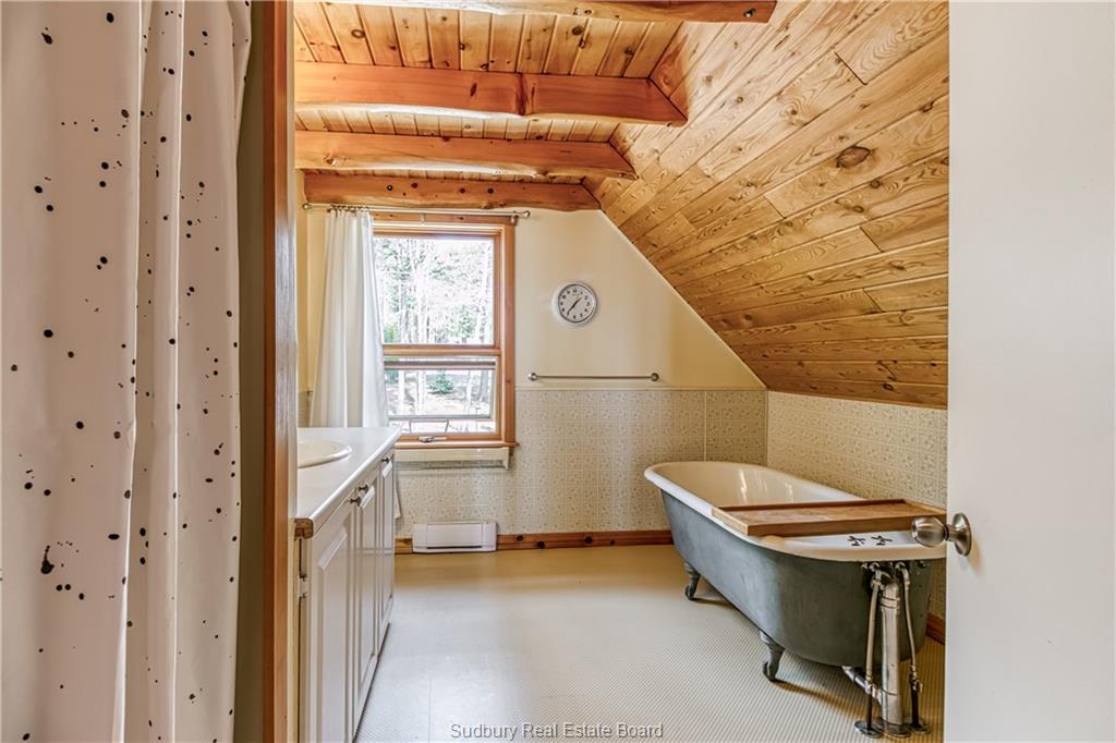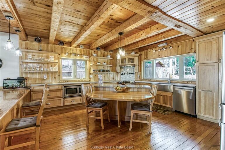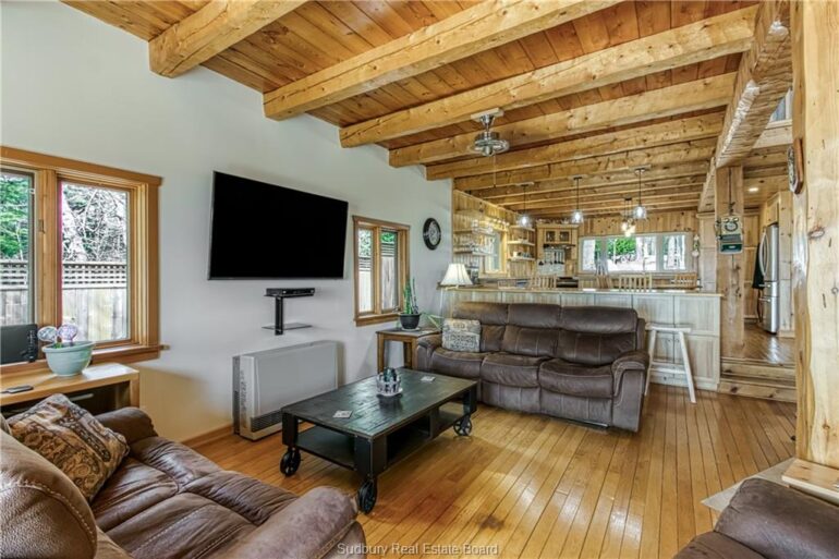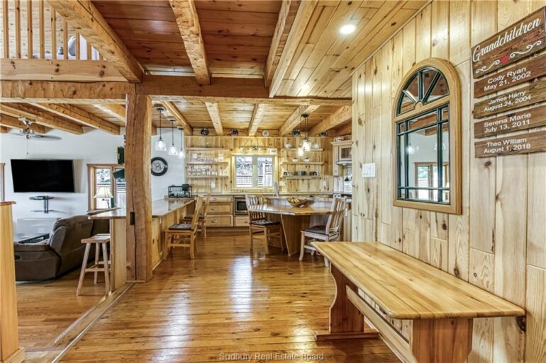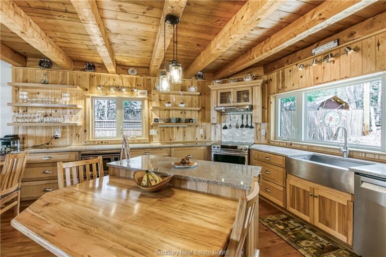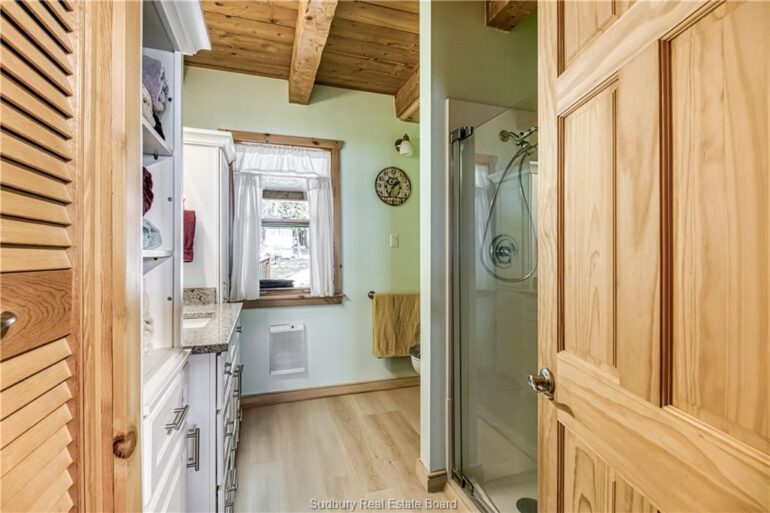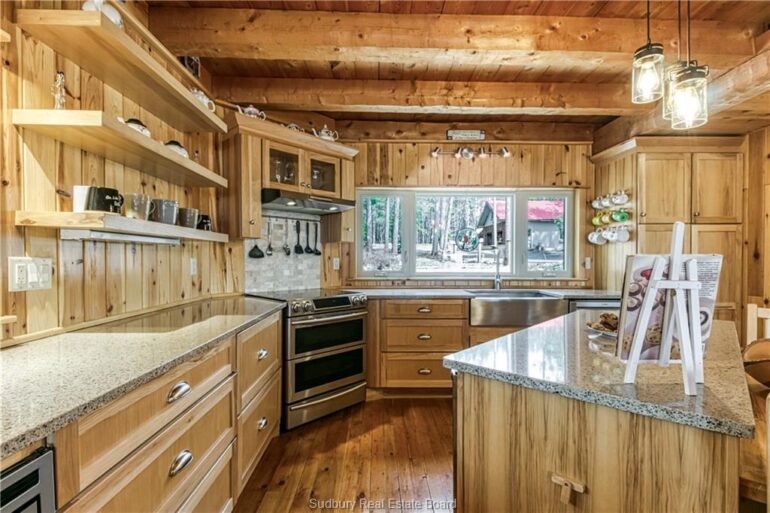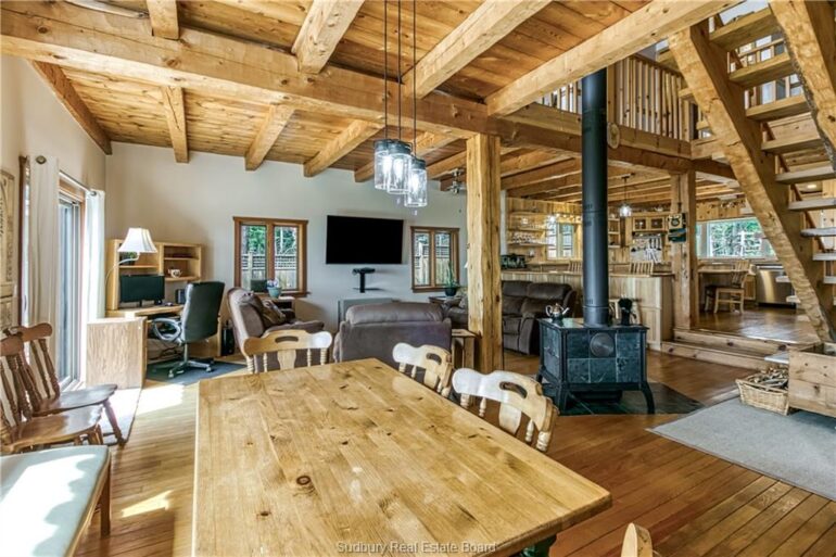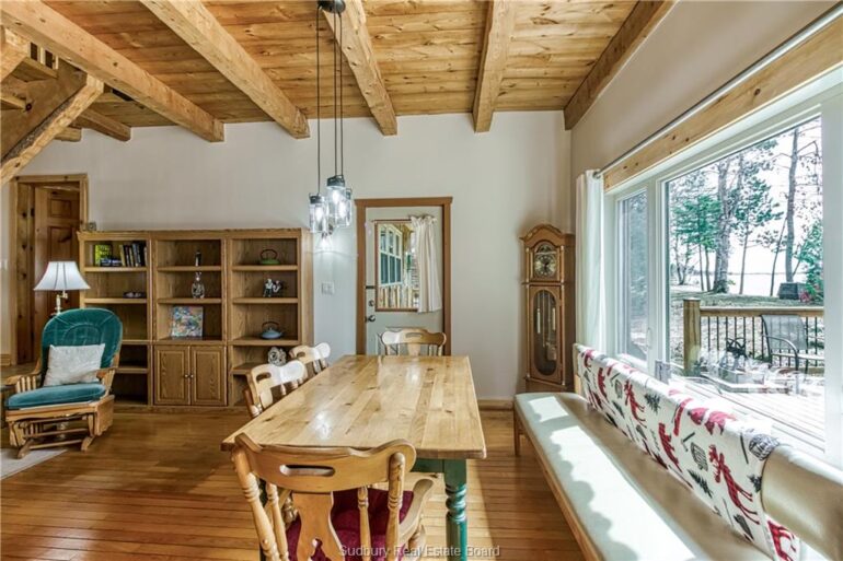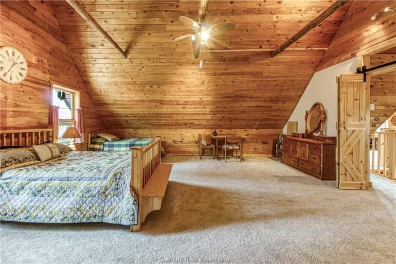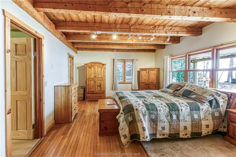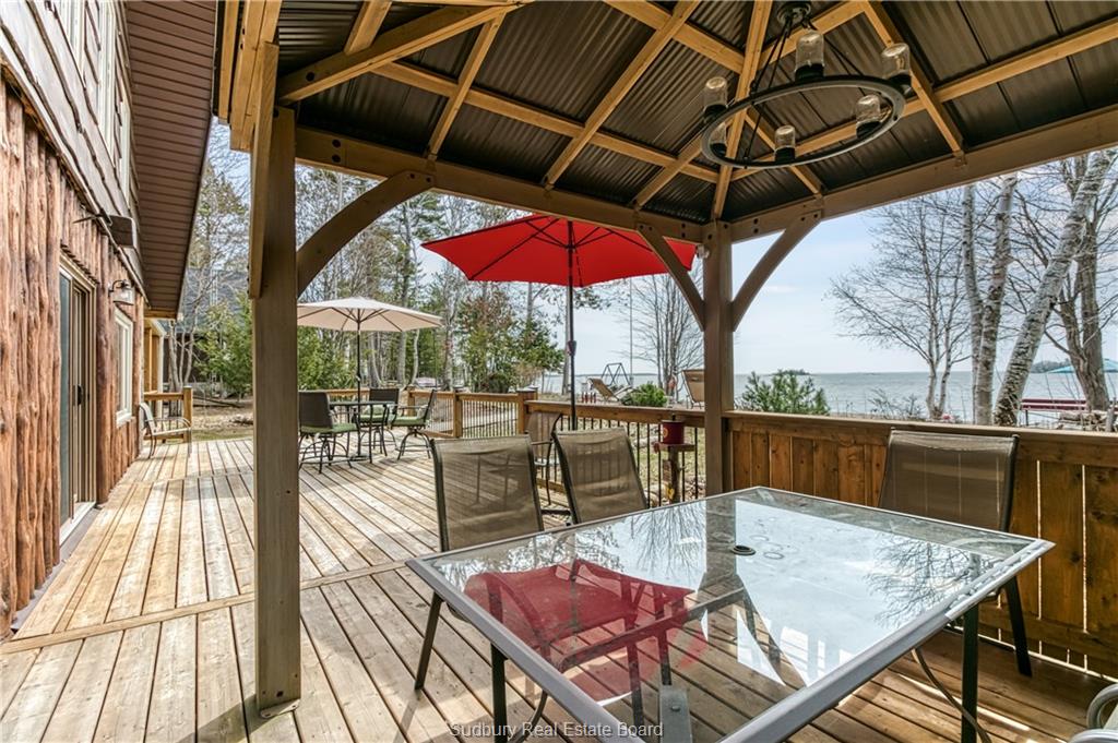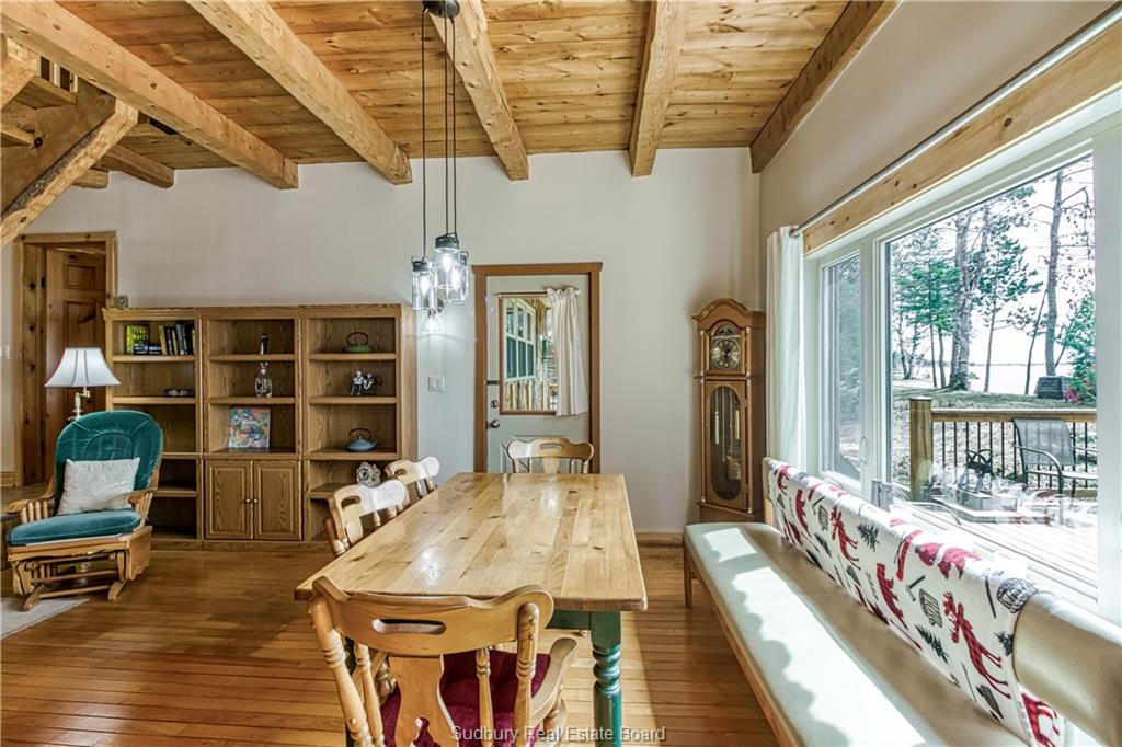 Welcome to 33 Dominion Park Drive, tucked away on a large beautiful treed lot along the pristine North Shores of Lake Huron. This exceptional post and beam custom built home offers an unmatched blend of comfort, craftsmanship, and natural beauty. With its own wide stretch of soft, sandy beach and unobstructed south-facing views, you’ll experience everything from warm sunrises to breathtaking sunsets. Whether you’re sipping morning coffee while the lake sparkles or winding down to the rhythm of the waves, the setting is simply unforgettable. Built with care and timeless design, this year round home features soaring vaulted ceilings, rich hardwood floors, and large windows that fill the space with natural light, offering panoramic views of the water. The heart of the home is the magazine worthy chef’s kitchen, complete with granite countertops, solid wood cabinetry, stainless steel sink and appliances, and open sightlines to the living spaces and the lake beyond. The main floor’s primary ensuite features a 3pc bath, walk-in closet and laundry. Upstairs, you’ll find a cozy yet airy family room with more stunning lake views, massive loft style bedroom, 3rd bedroom and full bathroom. With an impressive woodstove, propane wall furnace(2017), and electric backup, come low utility costs. Additional updates: steel roof (2009), newer windows including a brand new oversized lake facing window (2025), plumbing/electrical/water heater (2017), and professional crawl space improvements by Kenmar Basement Systems (2017). Outside, the property continues to captivate surrounded by perennials. The detached garage features a spacious loft—ideal for a studio, extra living space or storage. Whether you’re looking for a permanent home, a seasonal getaway, or a family retreat, 33 Dominion Park Drive offers the rare opportunity to live on one of the Great Lakes, surrounded by beauty, while being easily accessible. This is more than a home and once you arrive, you simply won’t want to leave!